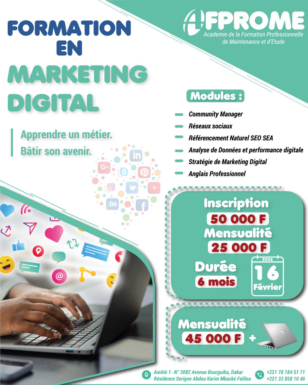 La filière Marketing Digital d’AFPROME Académie a été conçue pour répondre à ces besoins, en formant des apprenants opérationnels, polyvalents et adaptés aux réalités du marché local et international.